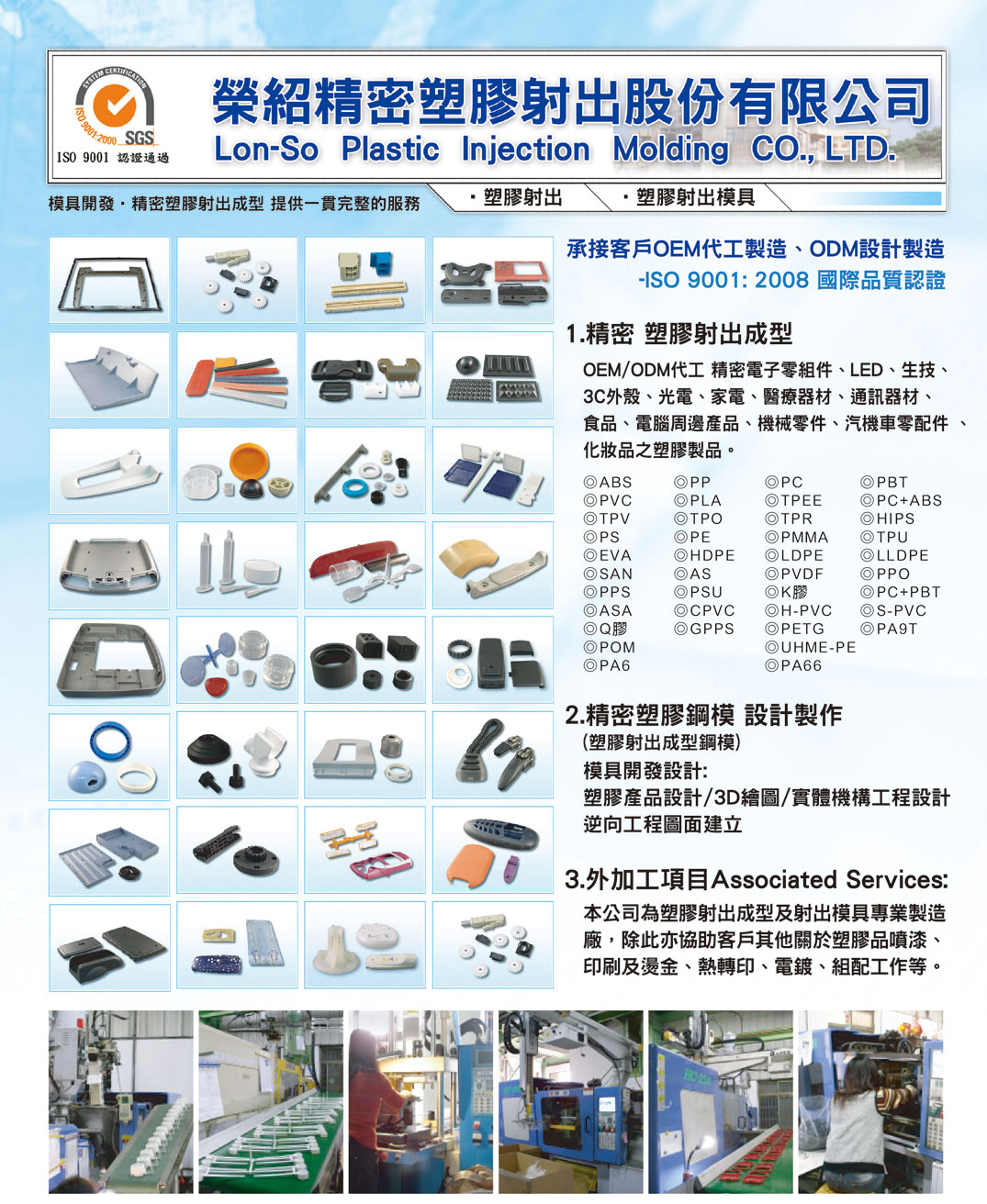 服務:精密塑膠射出成型,塑膠模具開發,塑膠成型二次加工。